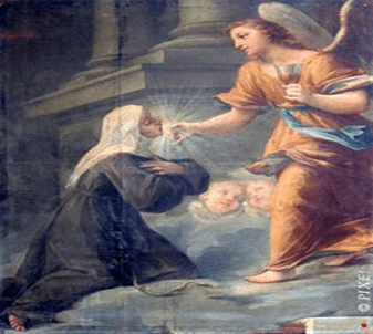Wealthy, she took part in the social events of the city until 1285, when she had a vision. Following that mystical experience, Angela became a member of the Franciscan Third Order.