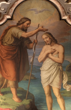 John preaches “a baptism of repentance for the forgiveness of sins.” A crowd of sinners, tax collectors and soldiers, Pharisees and Sadducees, and prostitutes—come to be baptized by him. “Then Jesus appears.” The Baptist hesitates, but Jesus insists and receives baptism.