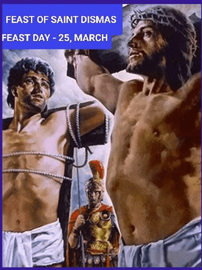 He is officially venerated as a saint in the Catholic Church. The Roman Martyrology places his commemoration on March 25, on the feast of the Annunciation, because of the ancient Christian tradition that Christ as well as the penitent thief were crucified and died exactly on the anniversary of Christ’s Incarnation.