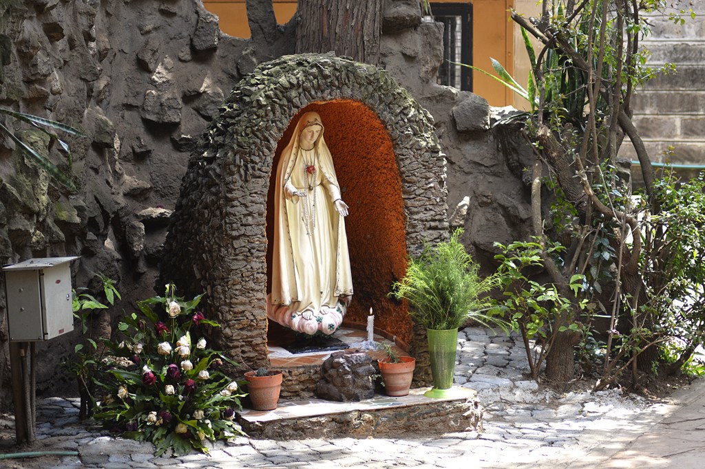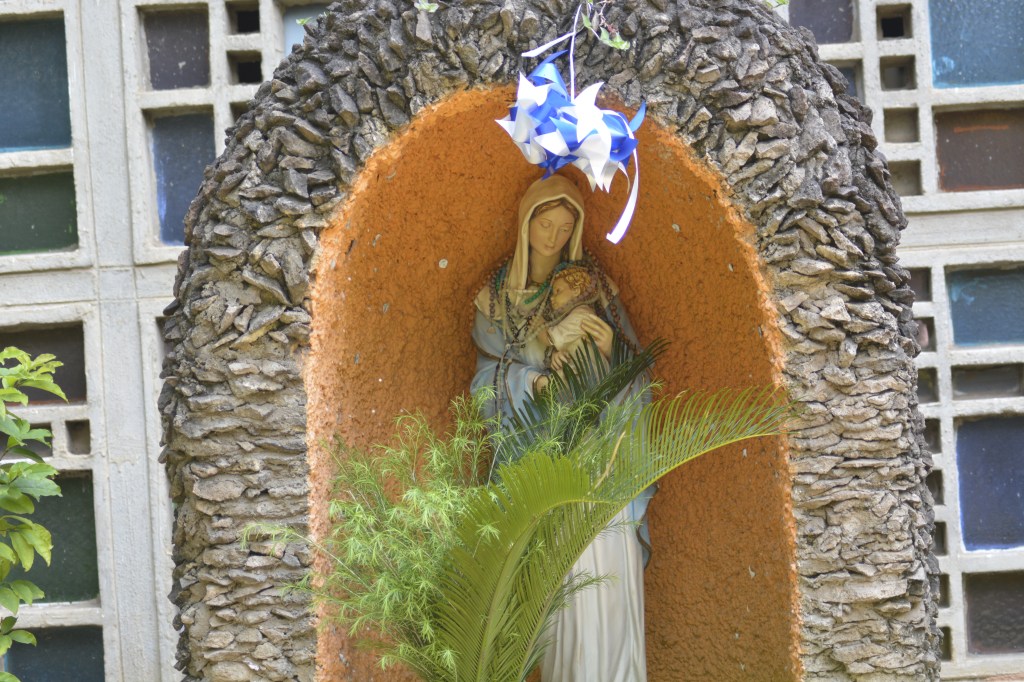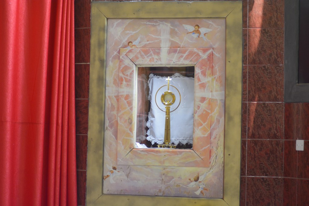 The full capacity of Our Lady of Guadalupe Main Sanctuary, upstairs and downstairs, is approximately 800 congregants. The Main sanctuary is surrounded by a beautiful compound of statues of Mother Mary, St. Joseph, and other saints, as well as stones with spiritual writings. There is also a wall with Old Testament books, a Wall with pastoral letters/catholic letters, and the Catechism wall. There are halls, offices, bookshop, car park, Our Lady of Guadalupe Primary school, the Ministry of the Deaf office, a library, a music studio, and the multi purpose tent, among other facilities within the compound.