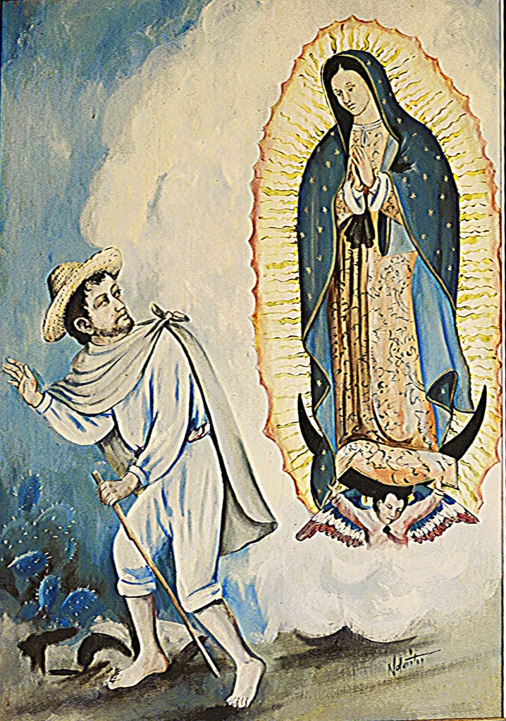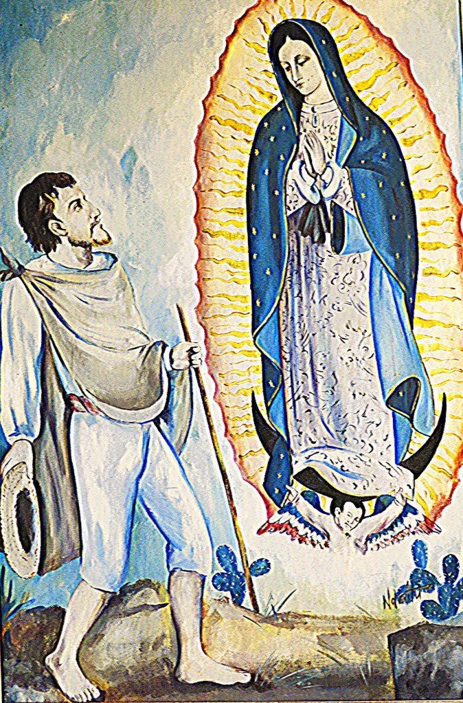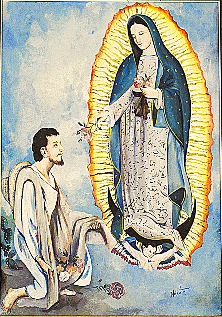 On Saturday, 9th December 1531, Blessed Mother Mary appeared to Saint Juan Diego at Tepeyac Hill in Mexico City. That morning, when Juan Diego reached Tepeyac Hill while heading to church at Tlatelolco, he heard beautiful music, and saw a white radiant cloud at the top of the hill. Suddenly, the song stopped and a beautiful, gentle, and graceful woman’s voice called his name, Juanito, Juan Dieguito!